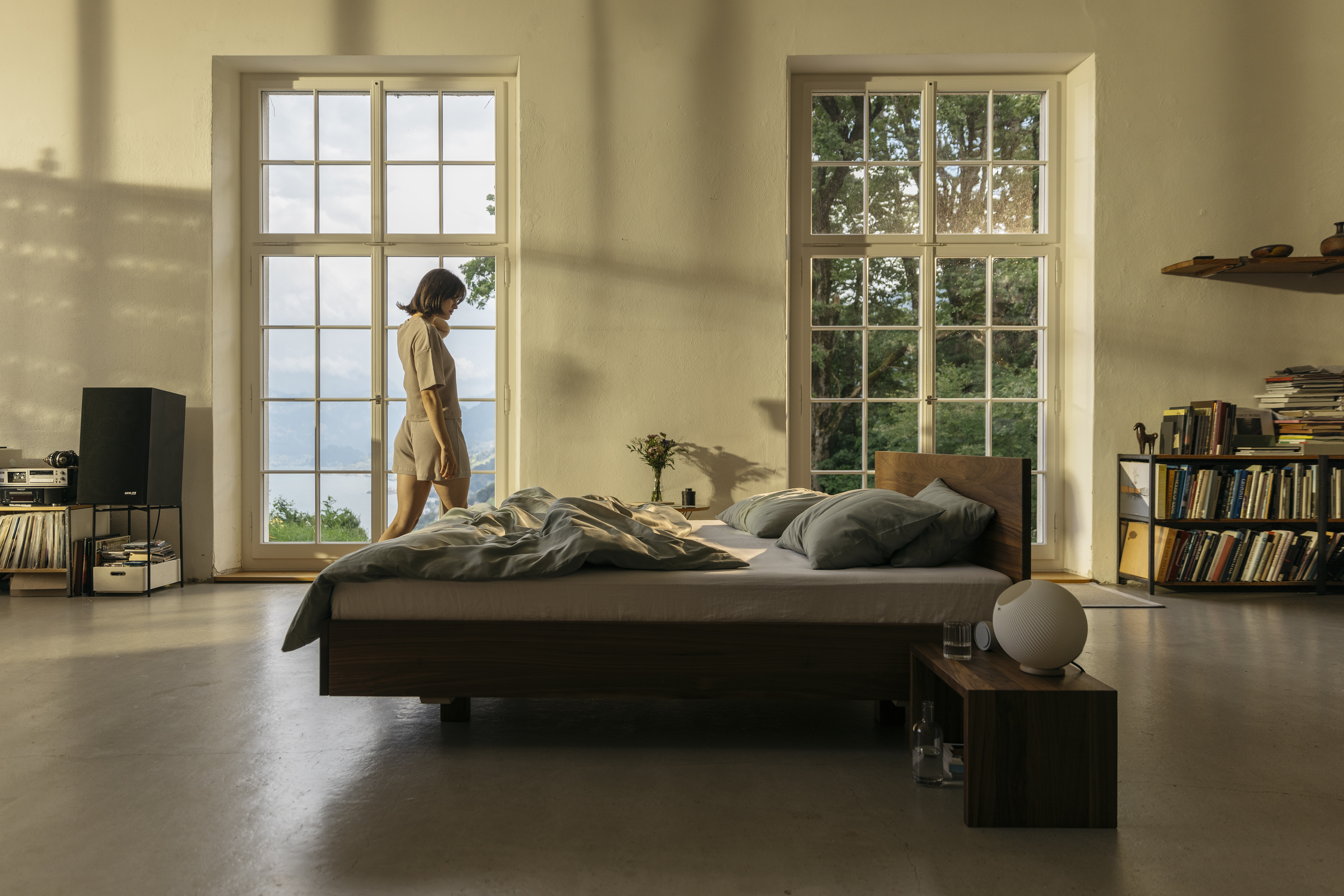 Das sind die Schweizer Naturbettsysteme, Matratzen und Bettwaren von Hüsler Nest, Massivholzbetten und -möbel von Zeitraum. Dazu Zudecken, Kopfkissen, Bettwäsche, Teppiche und Wohntextilien aus natürlichen Materialien für den Schlafraum.